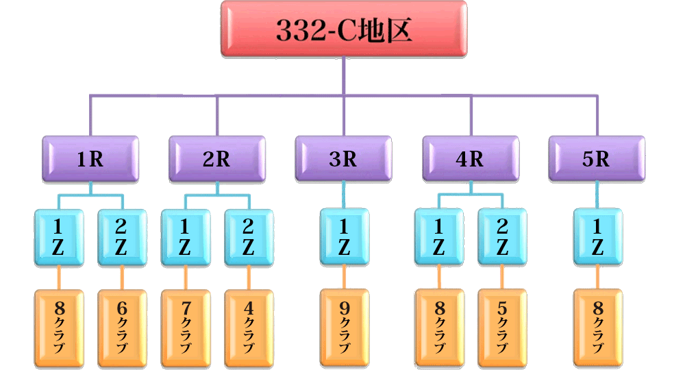 日本には330、331、332、333、334、335、336、337の8つの複合地区があり、332-C地区は332複合地区(東北地方)の中のCという準地区(宮城県)を示すことになります。